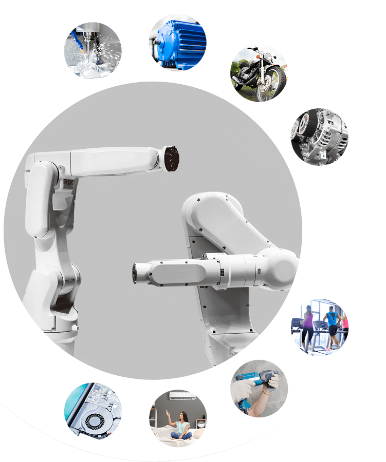 TPI's bearings for motors prioritize low noise, low vibration, and energy efficiency. Designed for dynamic performance, such as variable speeds in servo motors, their bearings use ceramic elements and specialized treatments to ensure stable operation, durability, and protection against electrical damage.